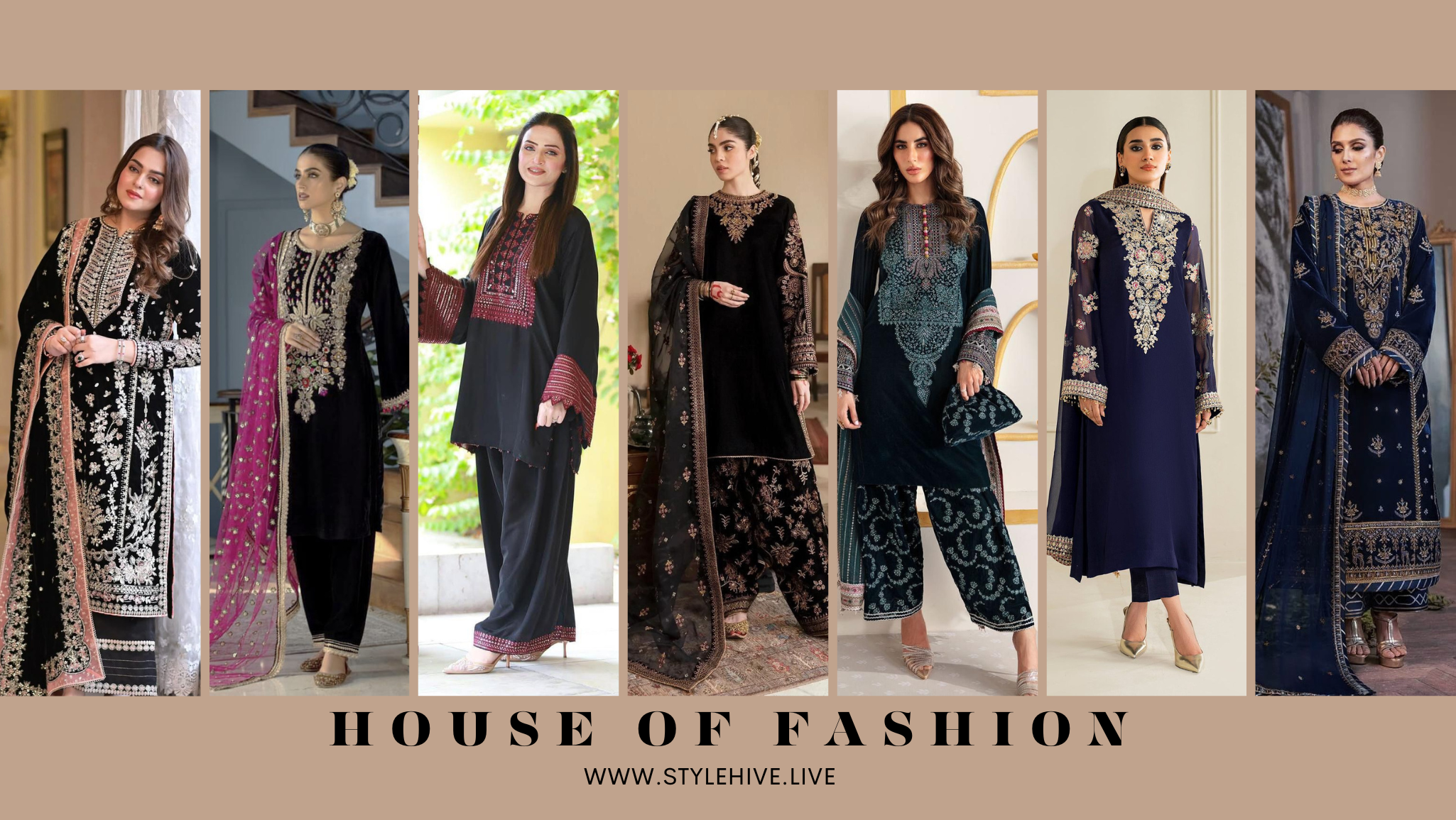ANEELAS Velvet Embroidered Hand Embellished Luxury Unstitched 3pc✓